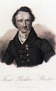 Neben vielen bekannten Cottbuser Persönlichkeiten aus Politik, Wirtschaft, Wissenschaft und Kultur verband sich das Leben des als Gartenkünstler, Weltenbummler und Reiseschriftsteller bekannten Hermann Fürst von Pückler-Muskau (1785 - 1871) mit der Metropole Berlin. Er schuf am Rande des damals kleinen, sich gerade entwickelnden Cottbus ab 1846 ein Kleinod, den Branitzer Park (4). Er bildet den Höhepunkt und Abschluss in der Kunst des deutschen Landschaftsgartens und ist als nationales Denkmal bekannt. Heute wie bereits zu Pücklers Lebzeiten ist das Branitzer Ensemble ein beliebtes Ausflugsziel für Cottbuser und Gäste, wozu auch das 2006 neu eröffnete Besucherzentrum auf dem Gutshof mit seiner Ausstellung "Fürst Pücklers Welt - Lebenskunst und Landschaftskunst" beiträgt. In mindestens zehn Berliner Salons verkehrte der Fürst. Viele dieser Salons wurden von Freundinnen Pücklers geführt. Er war ein Mensch, der die Welt und ihre Schönheiten bewusst erfahren und genießen wollte. Als Salonbesucher war er niemals langweilig, sondern konnte eine Gesellschaft mit guten Themen unterhalten. Auf Grund seiner Bildung, seiner Intelligenz, als Grandseigneur, seiner Tätigkeit als Landschaftsgärtner, Reisender und Schriftsteller konnte er über diese Themen angenehm plaudern und über seine Schwächen als Mensch reden. Gleiches unternahm er in der Provinz, in Branitz, wo er zu seinen seit 1854 stattfindenden und gesuchten Diners auf sein Schloss einlud. Hier versammelten sich die Honoratioren von Cottbus, hier plauderte er mit seinen Angestellten, aber auch mit Persönlichkeiten des preußischen Herrscherhauses, wie beispielsweise Carl Prinz von Preußen und seiner Frau, Prinzessin Marie, und Künstlern der damaligen Zeit.