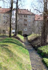Von hier aus eröffnen sich interessante Ansichten auf die Odermetropole. Die den Bach einengende Betoneinfassung ist verschwunden und der natürliche Charme eines munter daher
