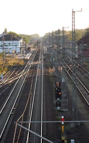 Der Jüterboger (Staats-)Bahnhof (7) war seit Mitte des 19. Jahrhunderts der Ankunftsort für alle Jüterbog- Reisenden. Die "Berlin-Anhalter-Bahn" verband Berlin und Dessau / Köthen und wurde nach 3-jähriger Bauzeit am 1. Juli 1841 eröffnet. Weitere Strecken folgten, so zum Beispiel die Militäreisenbahn Jüterbog- Zossen-Berlin (1897). 1956 kam ein eigenständiger sowjetischer Militärbahnhof hinzu, von dem der "Grüne Express", der Urlauberzug der sowjetischen Militärs, über Berlin- Karlshorst und Brest nach Moskau fuhr. Alle Strecken hatten ihren Ausgangspunkt am Jüterboger Bahnhof, so dass dieser zu allen Zeiten das Tor zur Stadt und zum Stadtteil Jüterbog II darstellte. Bereits 1910 konnte man als Militärangehöriger mit der Bahn für 50 Pfennig in 50 Minuten von Jüterbog nach Berlin zum Anhalter Bahnhof fahren.